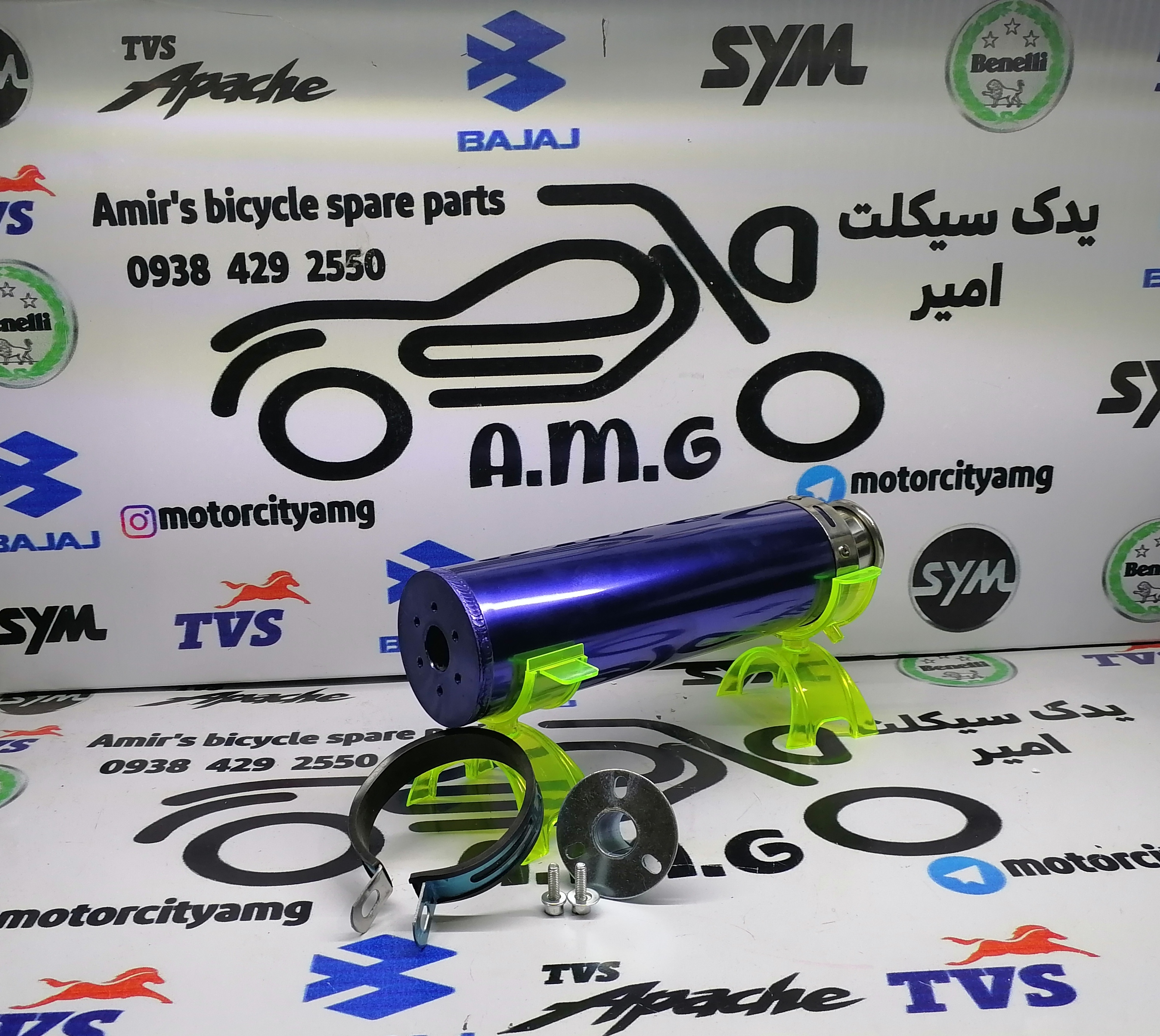 اگزوز قهرمانی موتورسیکلت رنگ آبی