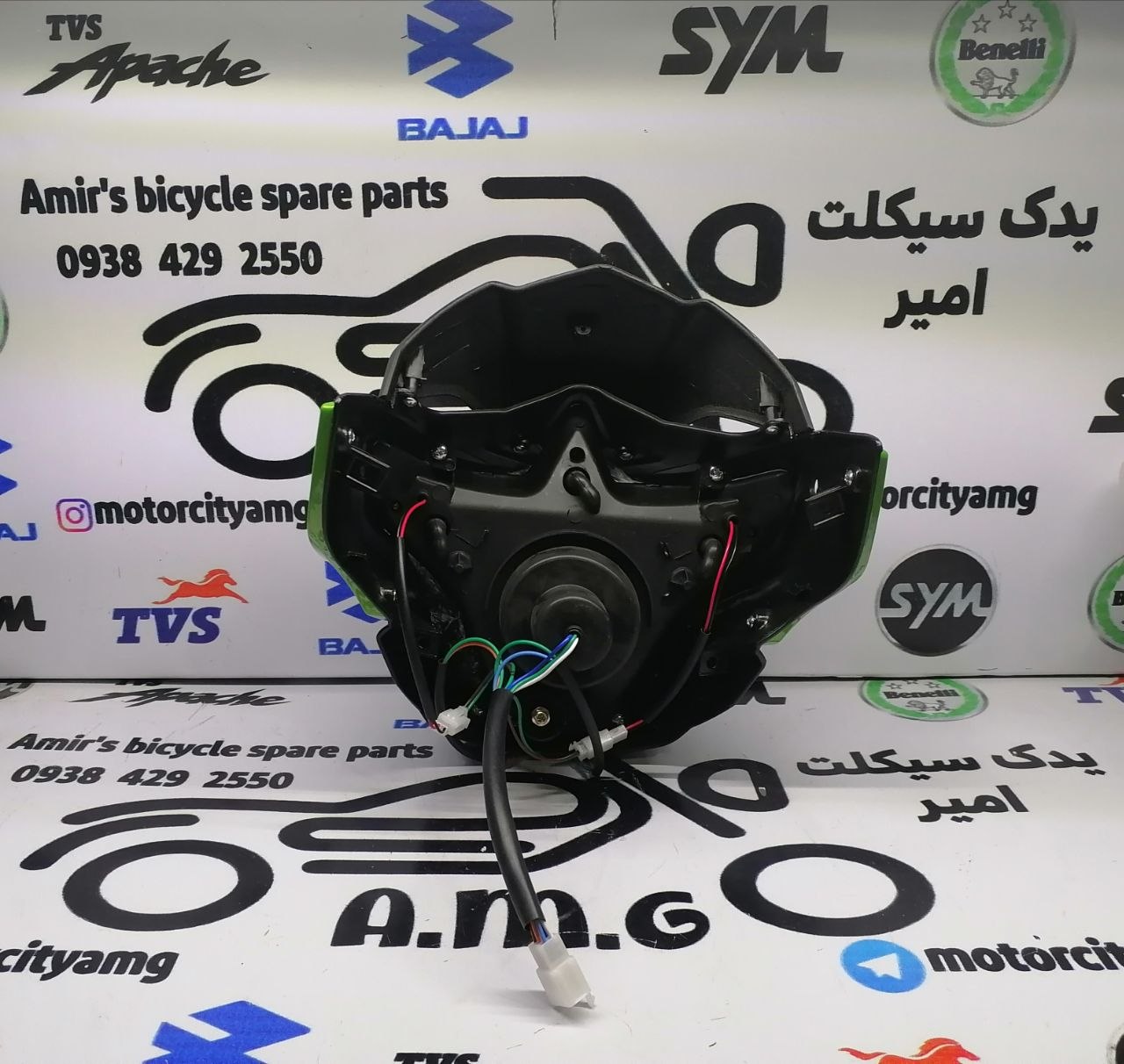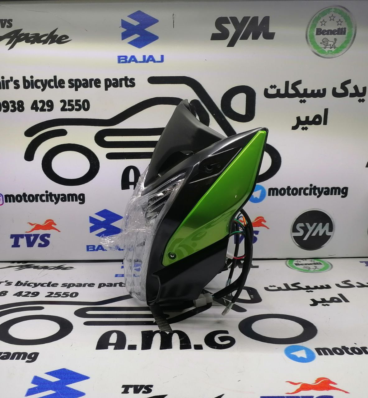 چراغ جلو (بلوری کامل ) کامل موتورسیکلت دلتا ۱۶۰ crt سبز